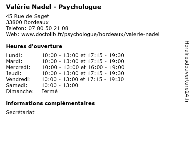 | Mardi | 10:00-13:00 et 17:15-19:00 |
