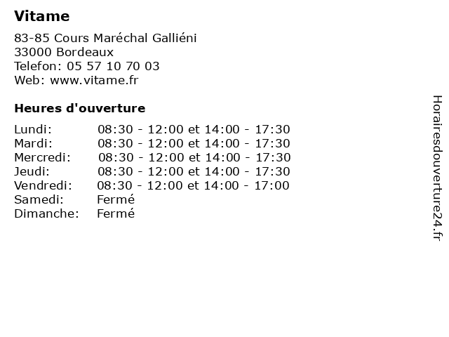 | Lundi | 08:30-12:00 et 14:00-17:30 |