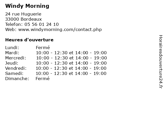 | Mardi | 10:00-12:30 et 14:00-19:00 |