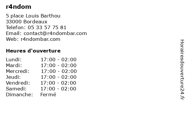 | Jeudi | 17:00-02:00 |