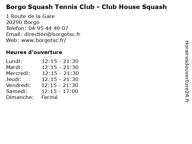 Termes de recherche pour Borgo Squash Tennis Club - Club House Squash:du, d'ouverture, club, house, ecole, heures, tennis, squash, borgo, equipes |