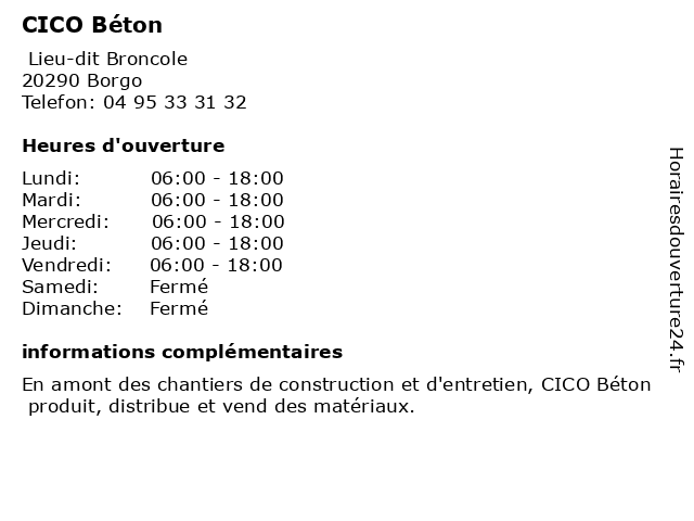 | 1 CICO Carrière (Distance: 0,00 km) - Lieu-dit Broncole, 20290 Borgo btp, carrière, cico, fournisseurs, machines, matériaux, travaux 2 CICO Carrière (Distance: 0,46 km) Lieu-dit Broncole, 20290 Borgo carrière, cico, fournisseur de matériaux pour le bâtiment, fournisseur de sable et gravier 3 Cico - Plateforme de Lucciana (Distance: 4,25 km) Lieu Dit Broncale, 20290 Lucciana cico, de, fournisseur de matériaux pour le bâtiment, fournisseur de sable et gravier, lucciana, plateforme 4 CICO Matériaux (Distance: 4,96 km) Lieu-dit Brancale, 20290 Lucciana cico, fournisseur de matériaux pour le bâtiment, fournisseur de sable et gravier, matériaux 5 Arts Béton (Distance: 5,41 km) 39 Allée Rouge, 20290 Borgo arts, borgo, béton, ciré, décoratif, sol, traitement 6 CICO Béton Ceppe (Distance: 7,67 km) - Lieu-dit Accolaghia, 20620 Biguglia btp, béton, ceppe, cico, fournisseurs, machines, matériaux, travaux |
