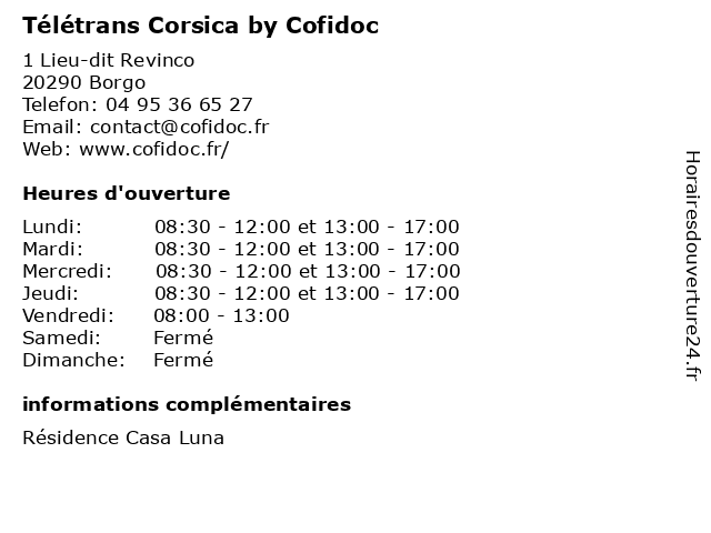 | Lundi | 08:30-12:00 et 13:00-17:00 |