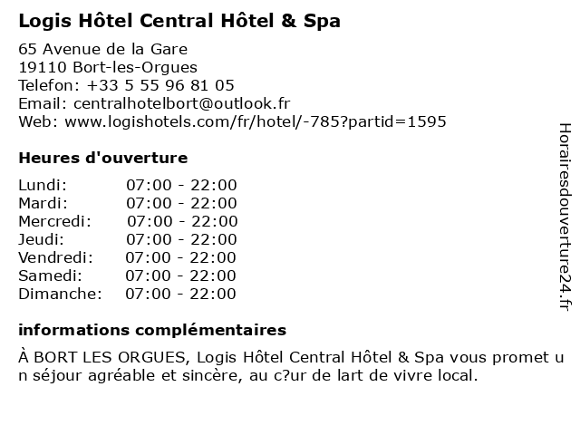 | Samedi | 07:00-22:00 |