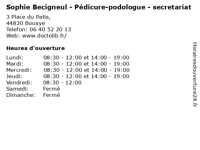 | Lundi | 08:30-12:00 et 14:00-19:00 |