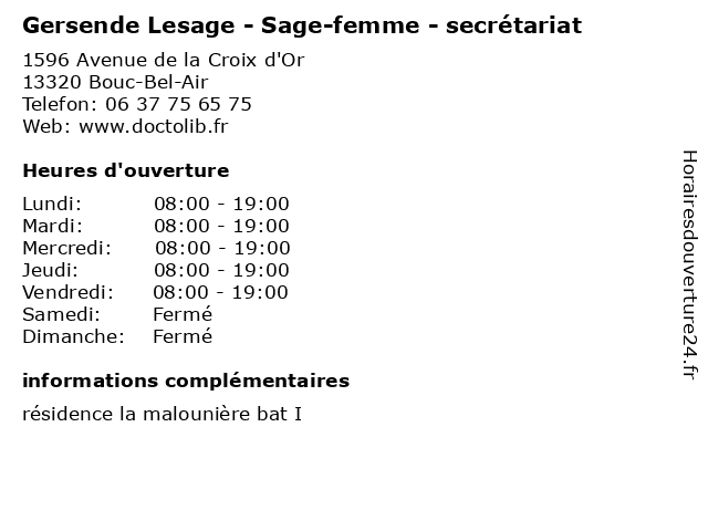 1 Rector Lesage (Distance: 18,07 km) 505 Allée Jean Perrin, 13130 Berre-l'Étang génie civil, lesage, logement collectif, maison individuelle, maison individuelle groupée, non résidentiel, ouvrages d'art, rector 2 Dr Melissa Lesage - Chirurgien-dentiste (Distance: 18,13 km) 75 Boulevard Charles Livon, 13007 Marseille chirurgien, dentaire, dentiste, dr, implantologie, lesage, melissa, parodontologie 3 Valérie Abraini-Saracco - Sage-femme - secrétariat (Distance: 1,72 km) s/n Impasse de la Petite Bastide, 13320 Bouc-Bel-Air abraini, diagnostic, echographie, femme, maternité, sage, sage-femme, saracco, secrétariat, valérie 4 Agenda Diagnostics (Distance: 1,85 km) . route de Violesi, 13008 Marseille agenda, diagnostic, diagnostics, gaz, immobilier 5 Amina Desvignes - Sage-femme (Distance: 2,84 km) 529 Chemin Joseph Roumanille, 13320 Bouc-Bel-Air amina, desvignes, du, femme, maternité, périnée, rééducation, sage, uro-gynécologique 6 Allo Diagnostic (Distance: 7,00 km) 395 Route des Milles, 13090 Aix en Provence allo, diagnostic, immobilier, services |