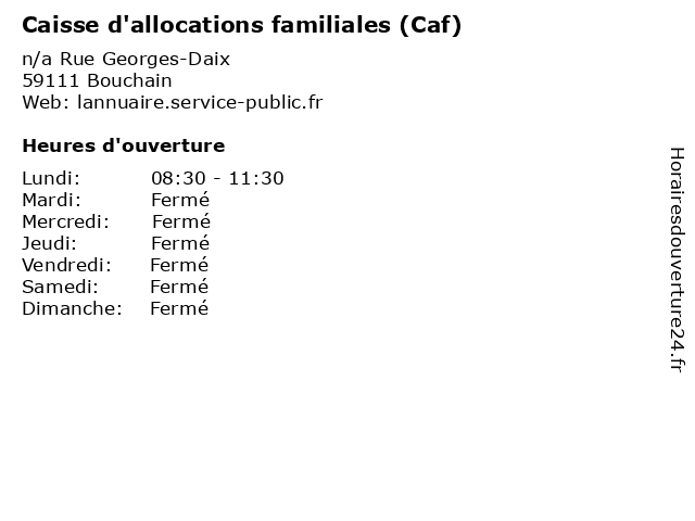 1 Caisse d'allocations familiales (Caf) (Distance: 2,95 km) n/a Place Gilbert-Henri, 59172 Roeulx caf, caisse, d'allocations, familiales, réseau local 2 Caisse d'allocations familiales (Caf) (Distance: 3,70 km) 34 rue Pasteur, 59252 Marquette-en-Ostrevant caf, caisse, d'allocations, familiales, réseau local 3 Caisse d'allocations familiales (Caf) (Distance: 5,63 km) 18 avenue Julien-Renard, 59282 Douchy-les-Mines caf, caisse, d'allocations, familiales, réseau local 4 Caisse d'allocations familiales (Caf) (Distance: 5,83 km) n/a Rue du 8-Mai-1945, 59124 Escaudain caf, caisse, d'allocations, familiales, réseau local 5 Caisse d'allocations familiales (Caf) (Distance: 5,83 km) 1 rue Pasteur, 59215 Abscon caf, caisse, d'allocations, familiales, réseau local 6 Caisse d'allocations familiales (Caf) (Distance: 8,04 km) 3 place Suzanne-Lannoy, 59165 Auberchicourt caf, caisse, d'allocations, familiales, réseau local |