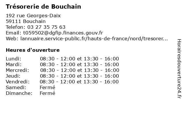 Termes de recherche pour Trésorerie de Bouchain:de, bouchain, administration, service, services publics, trésorerie |
