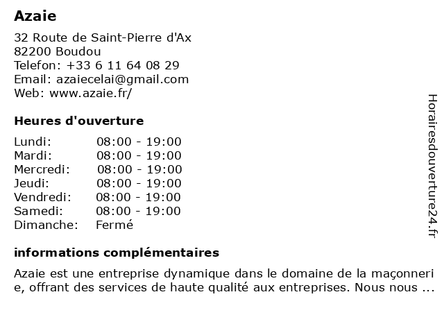 1 AZAIE NOE (Distance: 5,32 km) 1150 Chemin des Nauzes, 82200 MOISSAC artisan peintre, azaie, noe, peintre moissac, peinture générale, élagage  |
