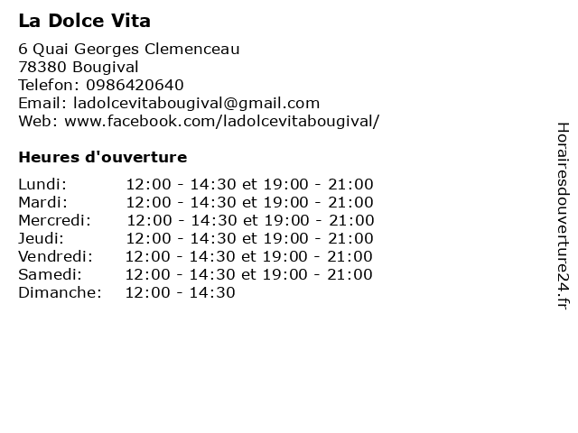 | Mardi | 12:00-14:30 et 19:00-21:00 |