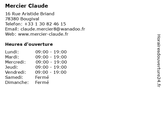 | Mercredi | 09:00-19:00 |