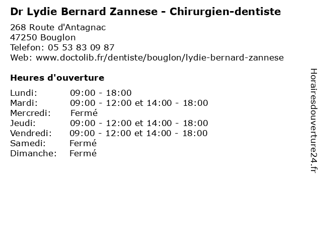 | Mardi | 09:00-12:00 et 14:00-18:00 |