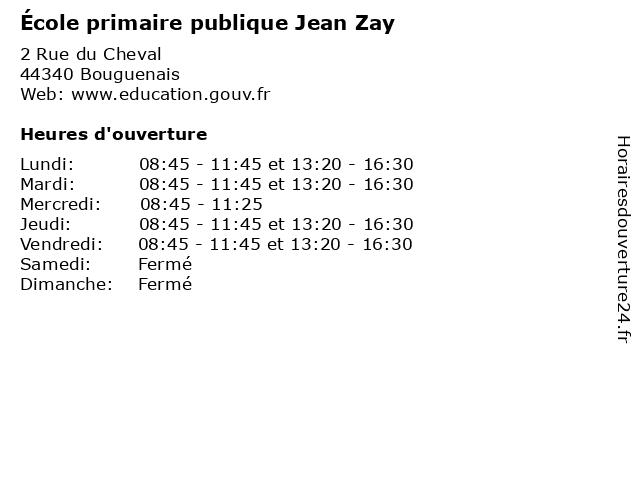 | Mardi | 08:45-11:45 et 13:20-16:30 |