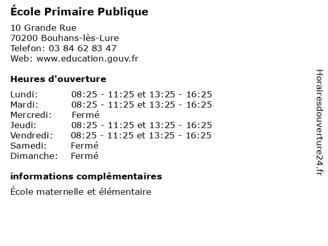 | Samedi | Fermé |