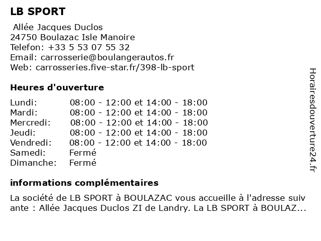 1 Go Sport (Distance: 1,19 km) 239 avenue de l'Automobile, 24750 Trelissac articles, chaussures, fitness, foot, football, go, musculation, natation, randonnée, running, ski, sport, sportif, sports, tennis, vélos, vêtements, équipement 2 Profession Sport & Loisirs Dordogne - PSL 24 (Distance: 3,79 km) 44 Rue du Sergent Bonnelie, 24000 Périgueux 24, azienda, cliente, dordogne, fabbrica, loisirs, profession, psl, sport, vendita 3 Lothaire Sport (Distance: 4,38 km) 2 Cours Montaigne, 24000 Périgueux accessoires, boutique, lothaire, magasin, prêt à porter, sport, vêtements 4 Fnmns 24 Fédération Nationale des Métiers de la Natation et du Sport (Distance: 4,74 km) 5 Rue de Campniac, 24000 Périgueux 24, de, des, du, et, fnmns, fédération, la, métiers, natation, nationale, sport 5 LB Beauty (Distance: 9,15 km) S/N Rue du 8 Mai 1945, 24330 Saint-Pierre-de-Chignac beauty, beauté, esthétique, lb, manucure, salon, spa 6 LB DPANNE (Distance: 18,27 km) 54-56 Gr Grand Rue, 24380 Vergt depannage electromenager bergerac, depannage electromenager perigord, depannage electromenager perigueux, depannage electromenager vergt, dpanne, electromenager bergerac, electromenager perigueux, electromenager sur demande, installation electromenager bergerac, installation electromenager perigueux, installation electromenager vergt, lave vaisselle bergerac, lave vaisselle perigueux, lave vaisselle vergt, lb, machine à laver bergerac, machine à laver perigord, machine à laver perigueux, machine à laver vergt, refrigerateur bergerac, refrigerateur perigueux, refrigérateur vergt |