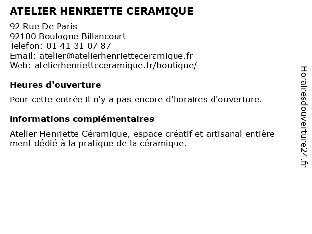 Appeler ATELIER HENRIETTE CERAMIQUE | |