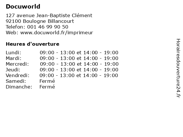 | Lundi | 09:00-13:00 et 14:00-19:00 |