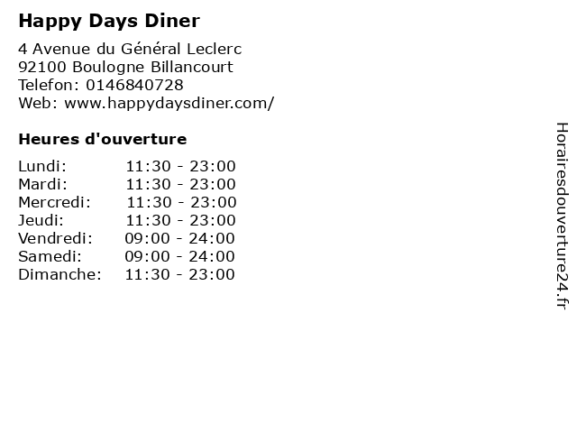 1 Happy Days Diner (Distance: 8,02 km) 25 rue Francisque Gay, 75006 Paris bistrot, burger, days, diner, fast, food, happy, hd, restaurant, restauration 2 Happy Days Diner (Distance: 8,04 km) 31 Rue d'Alsace, 92300 Levallois Perret bistrot, burger, days, diner, fast, food, happy, hd, restaurant, restauration 3 Happy Days Diner (Distance: 8,33 km) 2 rue du Roule, 75001 Paris bistrot, burger, days, diner, fast, food, happy, hd, restaurant, restauration 4 Happy Days Diner (Distance: 8,34 km) 25 Boulevard des Italiens, 75002 Paris bistrot, burger, days, diner, fast, food, happy, hd, restaurant, restauration 5 Happy Days Diner (Distance: 8,65 km) 25 Rue de la Reynie, 75006 Paris burger, days, diner, fast, food, happy, restaurant, restauration 6 Happy Days Diner (Distance: 9,76 km) 47 Boulevard Henry IV, 75004 Paris bistrot, burger, days, diner, fast, food, happy, hd, restaurant, restauration |