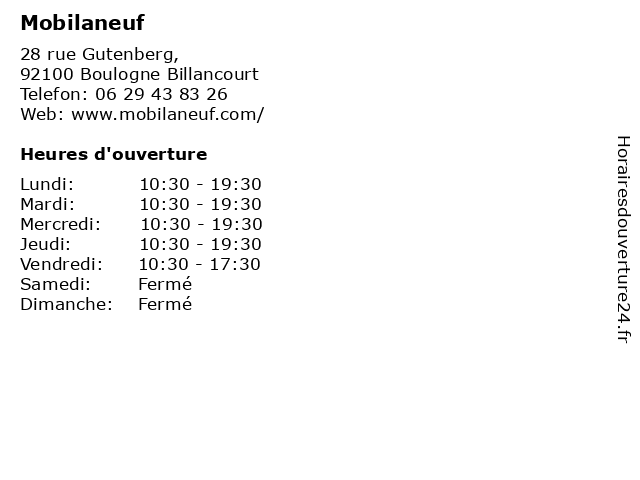 | Lundi | 10:30-19:30 |