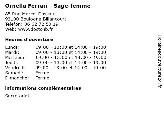 | Lundi | 09:00-13:00 et 14:00-19:00 |