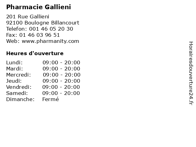 1 Pharmacie Gallieni (Distance: 3,86 km) 165 Avenue du 18 Juin 1940, 92500 Rueil Malmaison gallieni, herboristerie, médicaments, paramédical, parapharmacie, pharmacie, pharmacien, santé, traitements 2 Pharmacie Gallieni (Distance: 18,25 km) 54 Avenue Du General Gallieni, 94340 Joinville-le-Pont gallieni, médicaments, pharmacie, santé, soin 3 Pharmacie Gallieni (Distance: 18,63 km) 32 Boulevard gallieni, 94130 Nogent Sur Marne aromathérapie, gallieni, homéopathie, médicament, pharmacie, pharmacien giphar 4 Parking Zenpark (Gallieni Silly) (Distance: 0,06 km) 178 Rue Gallieni, 92100 Boulogne-Billancourt gallieni, parking, silly, stationnement, zenpark 5 École Maternelle Publique Gallieni Sèvres (Distance: 0,38 km) 210 Rue Gallièni, 92100 Boulogne-Billancourt cours, education, gallieni, maternelle, publique, services, sèvres, École, école 6 Babilou Boulogne Gallieni (Distance: 0,39 km) 134 Rue gallieni, 92100 BOULOGNE-BILLANCOURT babilou, boulogne, gallieni |