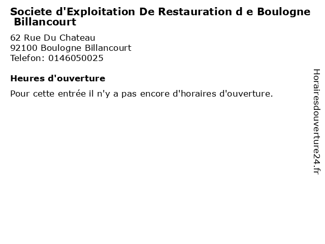 | Appeler Societe d'Exploitation De Restauration d e Boulogne Billancourt | |