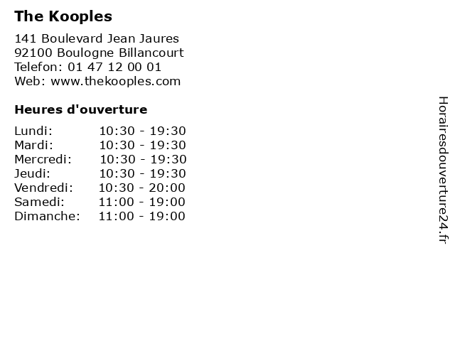 2 The Kooples (Distance: 6,05 km) 15 Parvis de la Défense, 92092 Paris La Défense chaussures, kooples, lingerie, mode enfant, mode femmes, mode hemmes, sport, the 3 The Kooples (Distance: 6,43 km) 21 Avenue du General Leclerc, 75014 Paris femme, homme, kooples, mode, the 6 |