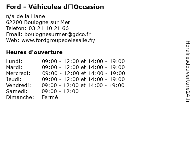 1 Ford - Service commercial (Distance: 0,00 km) n/a de la Liane, 62200 Boulogne sur Mer atelier de carrosserie, auto, car, commercial, financement, ford, ford entreprise, pièces et accessoires, service, véhicules d’occasion, véhicules neufs 2 Ford - Garage de Paris - Service commercial (Distance: 1,86 km) - Rue du Moulin de Neuville, 62630 Saint-Léonard commercial, de, ford, garage, paris, révisions, service, services, services d'automobiles 3 Ford - Garage de Paris - Véhicules d'Occasion (Distance: 1,86 km) - Rue du Moulin de Neuville, 62630 Saint-Léonard d'occasion, de, ford, garage, paris, révisions, service, services, services d'automobiles, véhicules 4 Ford - Garage de Paris - Ford Entreprise (Distance: 1,86 km) - Rue du Moulin de Neuville, 62630 Saint-Léonard de, entreprise, ford, garage, paris, révisions, service, services, services d'automobiles 5 Ford - Garage de Paris - Financement (Distance: 1,86 km) - Rue du Moulin de Neuville, 62630 Saint-Léonard de, financement, ford, garage, paris, révisions, service, services, services d'automobiles 6 Ford - Garage de Paris - Service Après-vente (Distance: 1,86 km) - Rue du Moulin de Neuville, 62630 Saint-Léonard après, de, ford, garage, paris, révisions, service, services, services d'automobiles, vente |