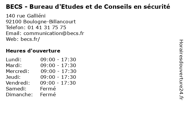 | Lundi | 09:00-17:30 |