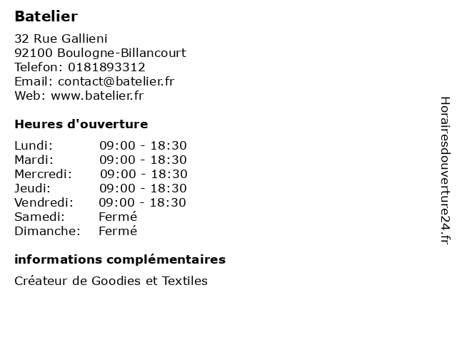 | Lundi | 09:00-18:30 |