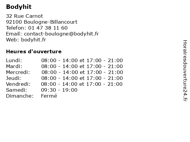 1 Bodyhit (Distance: 1,92 km) 39 bis Rue Molitor, 75016 Paris bien, bodyhit, du, etre, physique, préparation, salle, sport, stimulation, électro 2 Bodyhit (Distance: 2,22 km) 17 rue des Galons, 92190 Meudon activités, bodyhit, sport, studio, électro, électrostimulation 3 Bodyhit (Distance: 2,45 km) 2 Bis avenue du Maréchal Foch, 92210 Saint-Cloud activités, bodyhit, electro stimulations, entraînements, fitness, sport, sportif 4 Bodyhit (Distance: 2,57 km) 15 bis Rue Kléber, 92130 Issy-les-Moulineaux bien, bodyhit, du, etre, physique, préparation, salle, sport, stimulation, électro 5 Bodyhit (Distance: 4,30 km) 18 rue Letellier, 75015 Paris bien, bodyhit, du, etre, physique, préparation, salle, sport, stimulation, électro 6 Bodyhit (Distance: 5,03 km) 81 avenue Raymond Poincaré, 75116 Paris bien, bodyhit, du, etre, physique, préparation, salle, sport, stimulation, électro |