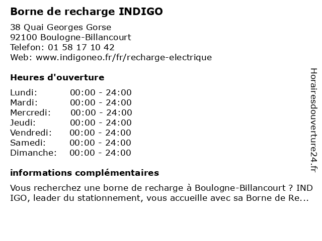 1 Borne de recharge INDIGO (Distance: 0,35 km) 55 Cours De L'île Seguin, 92100 Boulogne-Billancourt borne, de, indigo, recharge 2 Borne de Recharge INDIGO (Distance: 0,76 km) 90 Avenue Du Général Leclerc, 92100 BOULOGNE BILLANCOURT borne, de, indigo, recharge 4 Borne de recharge INDIGO (Distance: 1,60 km) 169 Quai De Stalingrad, 92130 Issy-les-Moulineaux borne, de, indigo, recharge 5 Borne de recharge INDIGO (Distance: 1,79 km) 10 Rue Lecointre, 92310 Sèvres borne, de, indigo, recharge 6 Borne de recharge INDIGO (Distance: 2,74 km) 60 Rue Du Général Leclerc, 92130 Issy-les-Moulineaux borne, de, indigo, recharge |