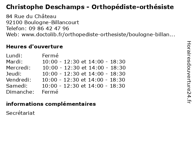 | Mercredi | 10:00-12:30 et 14:00-18:30 |