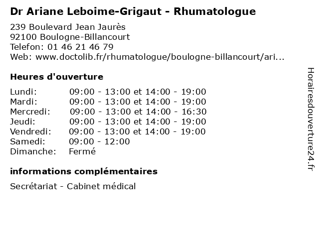 | Lundi | 09:00-13:00 et 14:00-19:00 |