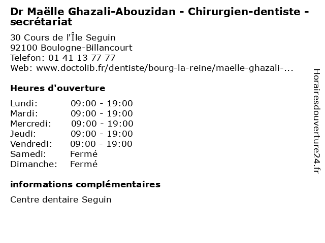 1 Dr Maëlle Ghazali-Abouzidan - Chirurgien-dentiste (Distance: 2,37 km) 33 Rue Rouget de Lisle, 92130 Issy-les-Moulineaux abouzidan, chirurgien, consultation, dentiste, docteur, dr, ghazali, maëlle, med, médecin, traitement 2 Dr Marie Maëlle Chandeze - Chirurgien viscéral et digestif (Distance: 4,90 km) 40 Rue Worth, 92150 Suresnes chandeze, chirurgien, consultation, digestif, docteur, dr, et, marie, maëlle, med, médecin, médecine, traitement, viscéral 3 Institut Maëlle (Distance: 5,82 km) 176 Rue de Vaugirard, 75015 Paris beauté, institut, manucure, massage, maëlle, soins, épilation 4 Dr Maelle Ghazali Abouzidan - Chirurgien-dentiste (Distance: 6,78 km) 17 Rue de la Tremoille, 75008 Paris abouzidan, chirurgien, consultation, dentiste, docteur, dr, ghazali, maelle, med, médecin, traitement 5 Maître Maëlle Picon - Avocate (Distance: 7,40 km) 61 Rue Henri Regnault, 92400 Courbevoie avocate, avocats, civils, droits, juridiques, maëlle, maître, picon 6 Dr Maëlle Ghazali-Abouzidan - Chirurgien-dentiste (Distance: 8,51 km) 36 Rue Tronchet, 75009 Paris abouzidan, chirurgien, consultation, dentiste, docteur, dr, ghazali, maëlle, med, médecin, traitement |