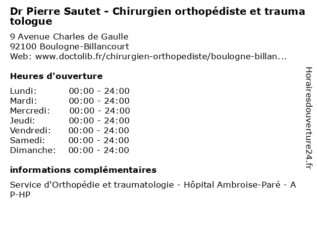 1 Dr Grégoire Ciais - Chirurgien orthopédiste et traumatologue (Distance: 0,00 km) 9 Avenue Charles de Gaulle, 92100 Boulogne-Billancourt ambroise, chirurgie, chirurgien, ciais, coude, dr, et, grégoire, hôpital, infiltration, main, orthopédie, orthopédiste, paré, poignet, service, sport, traumatologie, traumatologue, épaule 2 Dr Jean Sebastien Beranger - Chirurgien orthopédiste et traumatologue (Distance: 0,00 km) 9 Avenue Charles de Gaulle, 92100 Boulogne-Billancourt ambroise, arthroscopie, arthroscopique, beranger, chirurgie, chirurgien, dr, et, genou, hôpital, jean, orthopédie, orthopédiste, paré, sebastien, service, sport, traumatologie, traumatologue 3 Christophe Deschamps - Orthopédiste-orthésiste (Distance: 0,69 km) 84 Rue du Château, 92100 Boulogne-Billancourt christophe, deschamps, medecin, ortho, orthoptiste, orthopédiste, orthésiste, sante 4 Dr Vicken Topouchian - Chirurgien orthopédiste et traumatologue - secrétariat (Distance: 1,43 km) 101 Bis avenue Victor Hugo, 92100 Boulogne-Billancourt chirurgien, dr, et, médecins, médicaments, orthopédiste, santé, secrétariat, spécialiste, topouchian, traumatologue, vicken 5 Dr Sébastien Zilber - Chirurgien orthopédiste et traumatologue (Distance: 1,54 km) 34 Avenue du Général Sarrail, 75016 Paris autre, chirurgie, chirurgien, consultation, docteur, dr, et, médecins, orthopédique, orthopédiste, santé, sebastien, sébastien, traumatologue, zilber 6 Olivier Le Moullac - Orthopédiste-orthésiste (Distance: 1,61 km) 38 Avenue du Général Leclerc, 92100 Boulogne-Billancourt le, moullac, olivier, orthoplastie, orthopédiques, orthopédiste, orthèse, orthésiste, podologique |