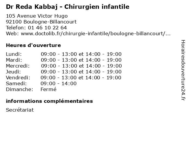 1 Dr Reda Kabbaj - Chirurgien infantile (Distance: 11,78 km) 26 Avenue du Docteur Arnold Netter, 75012 Paris chirurgien, docteur, dr, infantile, kabbaj, médecin, reda 2 Medecin Amelie Rogier De Mare (Chirurgien infantile) (Distance: 0,00 km) 105 Avenue Victor Hugo, 92100 Boulogne-Billancourt amelie, chirurgien, de, docteur, infantile, mare, medecin, rogier, sante, services 3 Medecin Olivier Chamond (Chirurgien infantile) (Distance: 0,00 km) 105 Avenue Victor Hugo, 92100 Boulogne-Billancourt chamond, chirurgien, docteur, infantile, medecin, olivier, sante, services 4 Lina Kabbaj - Ostéopathe (Distance: 3,12 km) 94 Rue de Javel, 75015 Paris kabbaj, lina, osteo, osteopathe, ostéopathe, sante, soins 5 Dr Latifa Roy-Ledoux Kabbaj - Orthodontiste (Distance: 9,67 km) 29 Boulevard Jules Ferry, 75011 Paris chirurgie, chirurgien, dentaire, dentiste, dr, kabbaj, latifa, ledoux, orthodontiste, roy 6 Centre de Protection Maternelle et Infantile (Distance: 11,89 km) 3 esplanade Salvador Allende, 95100 Argenteuil centre, conseils, de, et, infantile, maternelle, parents, pmi, protection, prévention, puéricultrice, pédiatre |