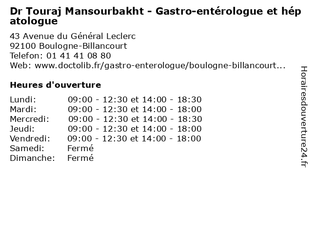 | Lundi | 09:00-12:30 et 14:00-18:30 |
