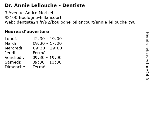 | Lundi | 12:30-19:00 |