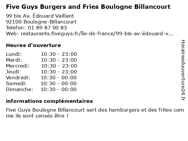 Termes de recherche pour Five Guys Burgers and Fries Boulogne Billancourt:boulogne, restaurants, and, five, fast-food, billancourt, burgers, fries, guys, restaurant américain, restaurant à emporter, restaurant de hot dogs |
