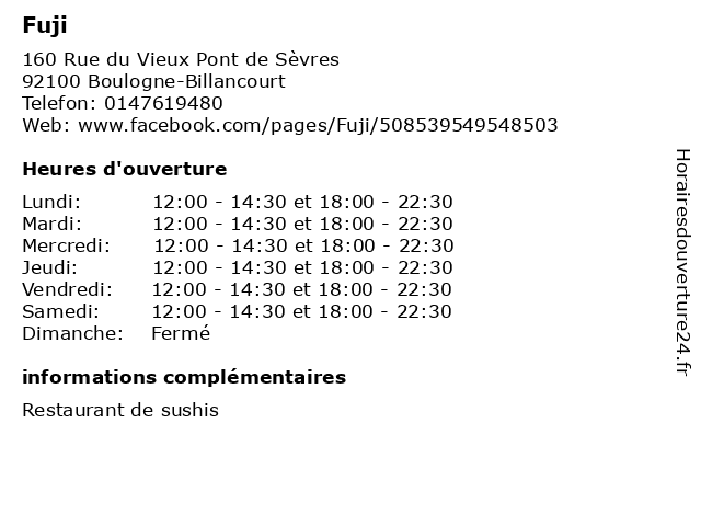 | Samedi | 12:00-14:30 et 18:00-22:30 |