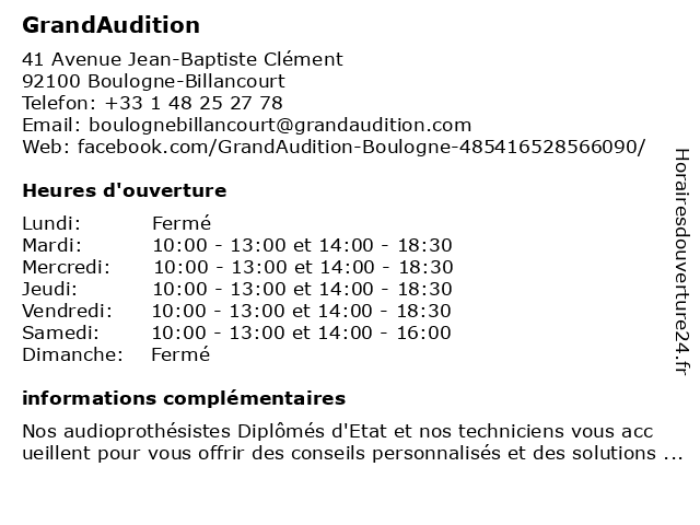 | Jeudi | 10:00-13:00 et 14:00-18:30 |