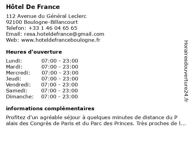| Samedi | 07:00-23:00 |