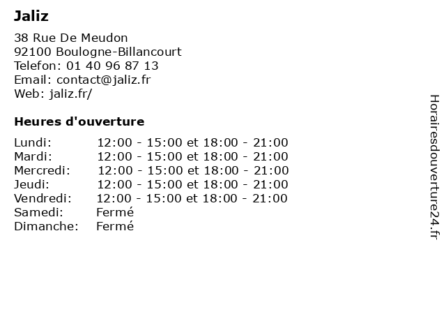 | Lundi | 12:00-15:00 et 18:00-21:00 |