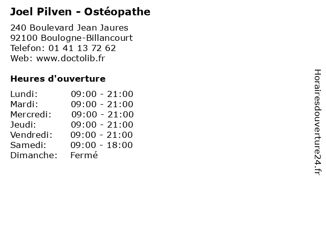 1 Joel Pilven - Ostéopathe (Distance: 6,26 km) 56 Rue Hallé, 75014 Paris actes et symptômes, expertises, joel, ostéopathe, ostéopathie du sport, ostéopathie viscérale, pilven 2 Dr Joel Pergament - Médecin généraliste (Distance: 1,48 km) 27 Rue de Sevres, 92100 Boulogne-Billancourt consultation, docteur, dr, généraliste, joel, med, médecin, pergament, traitement 4 Editions Joel Garcia (Distance: 6,17 km) 42 Rue du Père Corentin, 75014 Paris editions, garcia, hair salon, joel, salon 5 Dr Joel Dana - Chirurgien-dentiste (Distance: 6,36 km) 163 Avenue Charles de Gaulle, 92200 Neuilly-sur-Seine chirurgie, chirurgien, dana, dentaire, dentiste, dr, joel 6 Dr. Pitre Joel- Endocrine Surgery (Distance: 6,59 km) 4 Boulevard Victor Hugo, 92200 Neuilly-sur-Seine docteur, dr., endocrine, joel, medecins, pitre, sante, surgery |