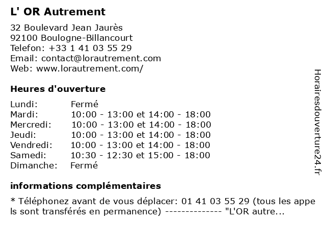 | Mercredi | 10:00-13:00 et 14:00-18:00 |