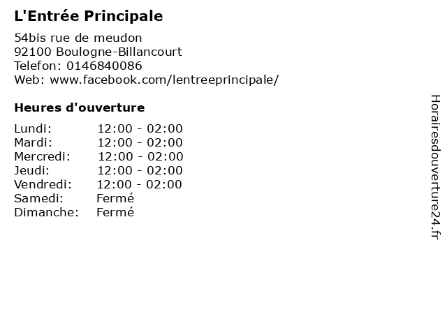 | Vendredi | 12:00-02:00 |