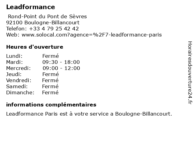 Leadformance Paris est à votre service a Boulogne-Billancourt.