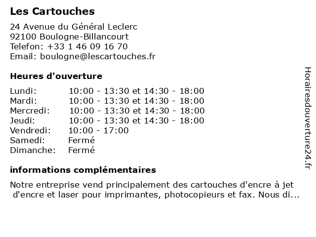 | Mercredi | 10:00-13:30 et 14:30-18:00 |