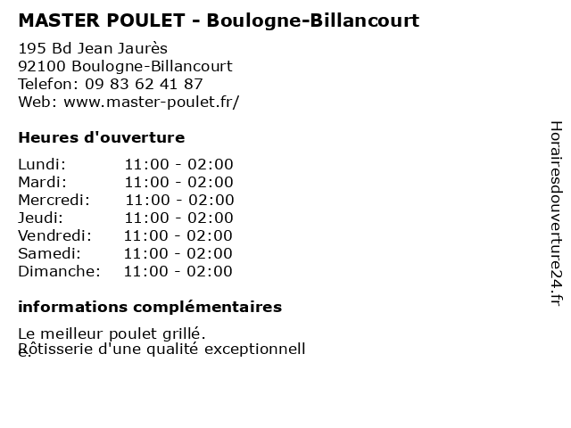 Termes de recherche pour MASTER POULET - Boulogne-Billancourt:boulogne, restaurants, master, fast-food, poulet, billancourt, service de livraison de restaurant, restaurant de grillades |